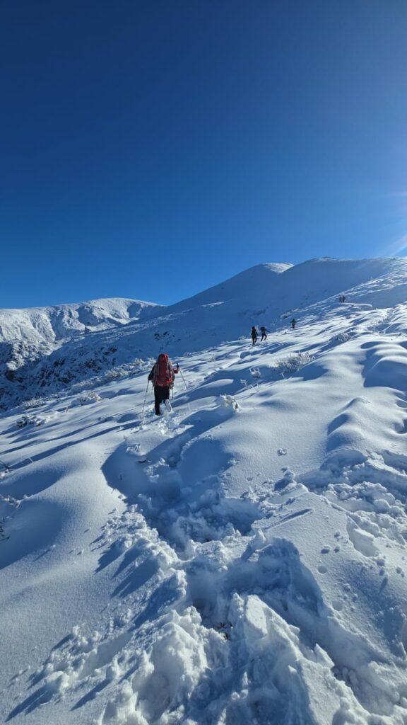 Powerbanka podłączyłem o 15.46 O 16.30 byliśmy gotowi do drogi w dół. Na samym początku drogi powrotnej trzeba uważać żeby nie być za szybko na dole, śnieg i tym razem bardziej się nam podobał niż pomagał, ale spokojnie dotarliśmy do głównego szlaku i kilka minut po 18 byliśmy już na parkingu.